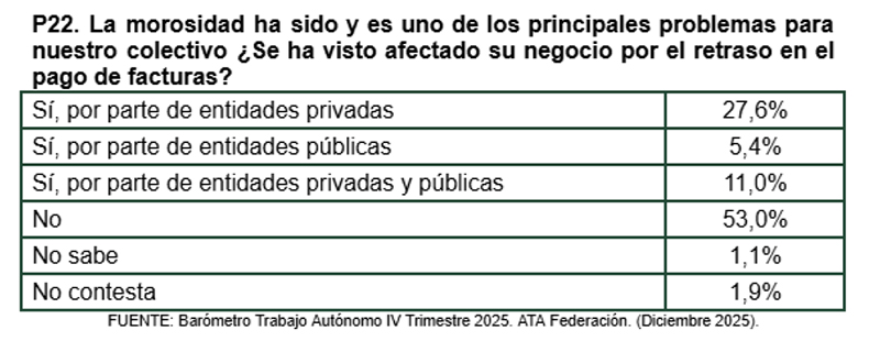 Un 53% de los autónomos encuestados desde ATA asegura no verse en este momento afectado por la morosidad.