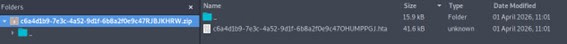 Dentro del archivo comprimido tan solo encontramos un fichero HTA acompañada de una carpeta en cuyo interior se encuentra un componente legítimo de la plataforma Oracle Java SE. Este tipo de ficheros es usado con cierta frecuencia en las fases iniciales de la cadena de infección puesto que solamente suele contener código que redirecciona a la descarga del malware de segunda fase o el propio payload responsable de ejecutar la amenaza preparada por los atacantes.